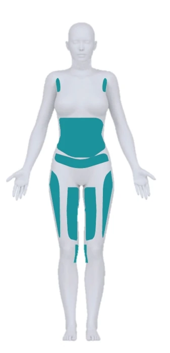 Rozwiązaniem jest kriolipoliza Cooltech. Kriolipoliza przynosi znakomite efekty likwidując nadmiar tkanki tłuszczowej z brzucha, boczków, bryczesów, ud i ramion. Poniżej przedstawiamy zaznaczone obszary zabiegowe.